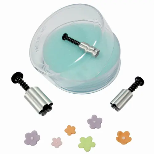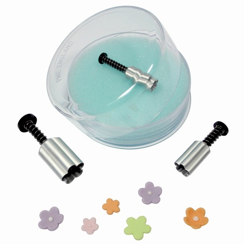 Blüten- und Vergissmeinnicht-Ausstecherset aus Aluminium von PME. Zum Ausstechen von feinen Formen. Die Durchmesser sind 0,7, 1 und 1,5 cm.