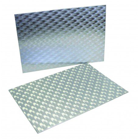 Die Tortenplatte ist aus Hartkarton mit metallisch, silberfarbiger Beschichtung.
