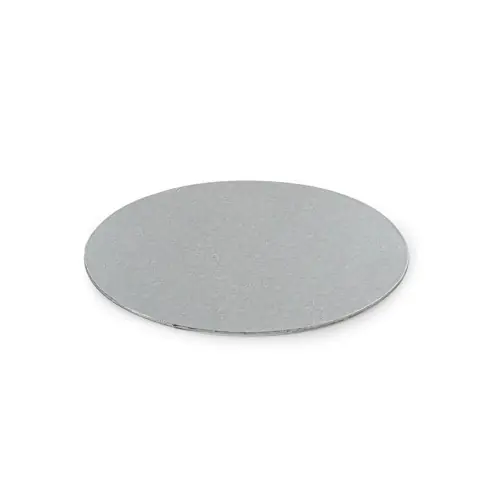 Die Tortenplatte ist aus Hartkarton mit metallisch, silberfarbiger Beschichtung.