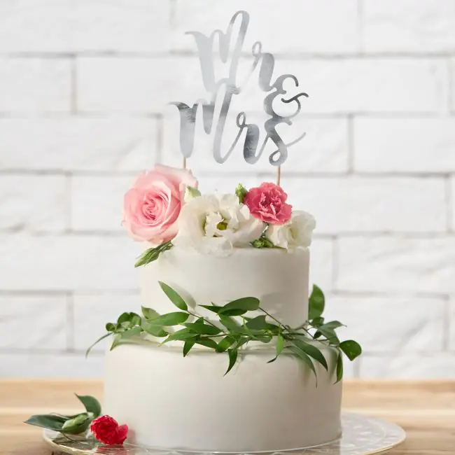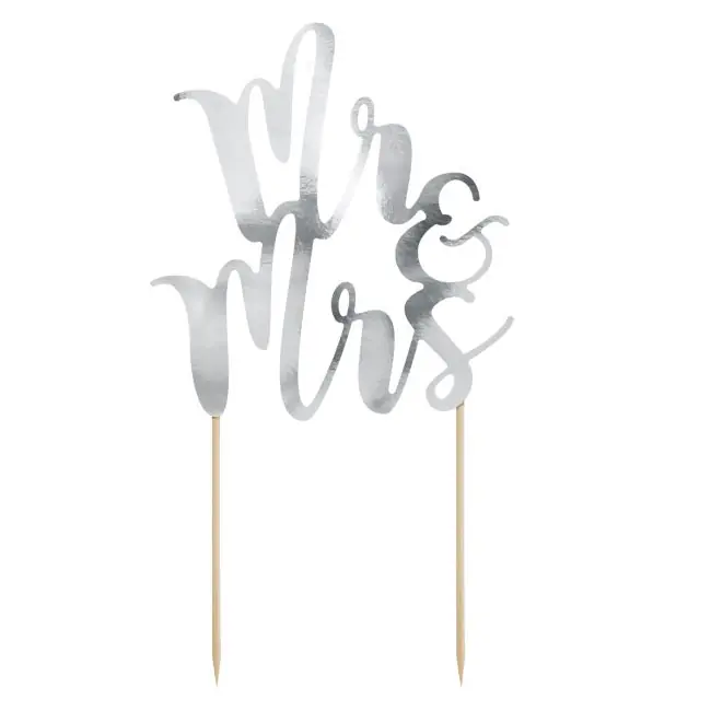 Vollenden Sie Ihre Hochzeitstorte mit diesem wunderschönen goldenen Mr & Mrs Cake Topper von PartyDeco!
