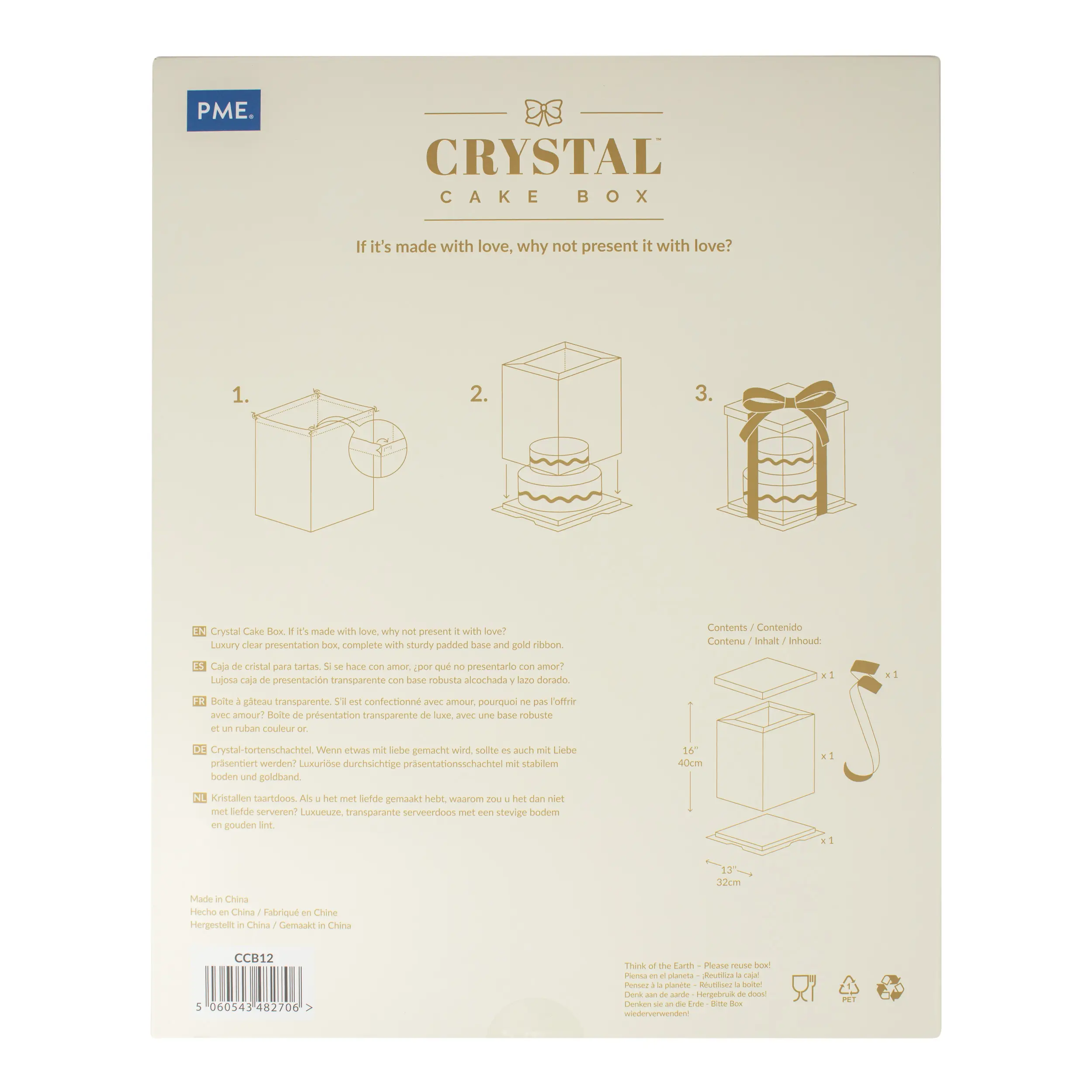 Die Schachtel ist wiederverwendbar und ermöglicht es Ihnen, Ihre Torten zu jedem Anlass zu präsentieren.