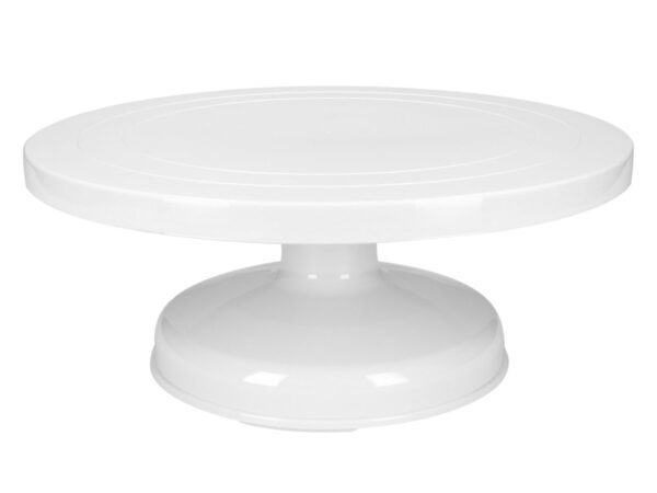 Ein praktischer Drehteller zum einfachen Dekorieren, Bearbeiten und Präsentieren von Torten und Cupcakes. Der Drehteller besteht aus leicht zu reinigendem PVC. Das Drehelement besteht aus einem hochwertigen Kugellager.