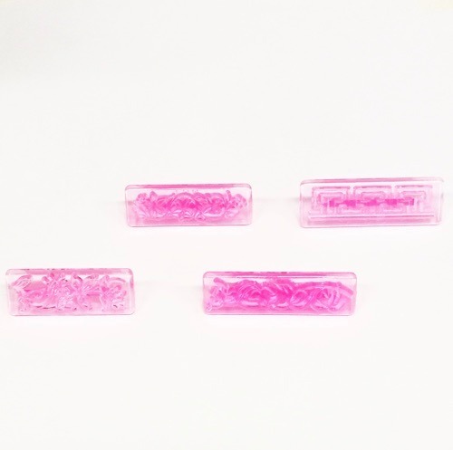 Set aus vier kleinen Stempeln um Motive in Rollfondant zu prägen.