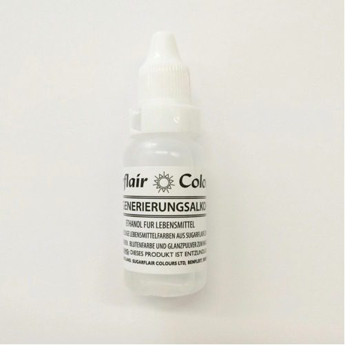 Sugarflair Rejuvenator Spirit ist ein lebensmittelsicherer Alkohol, der zum Mischen von essbaren Farben oder Glanzpudern zum Bemalen von Torten und Dekorationen verwendet wird. Er verdunstet schnell und sorgt für ein glattes, streifenfreies Ergebnis.