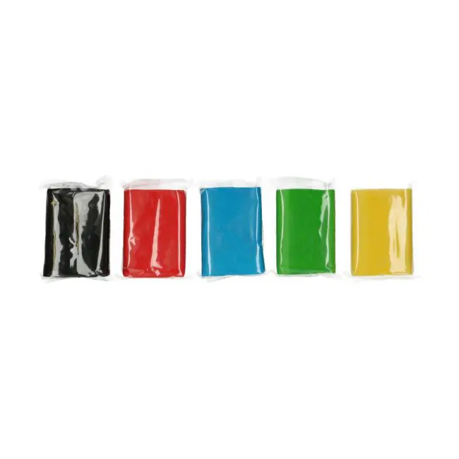 Das Set enthält schwarzen, gelben, roten, grünen und blauen Rollfondant.