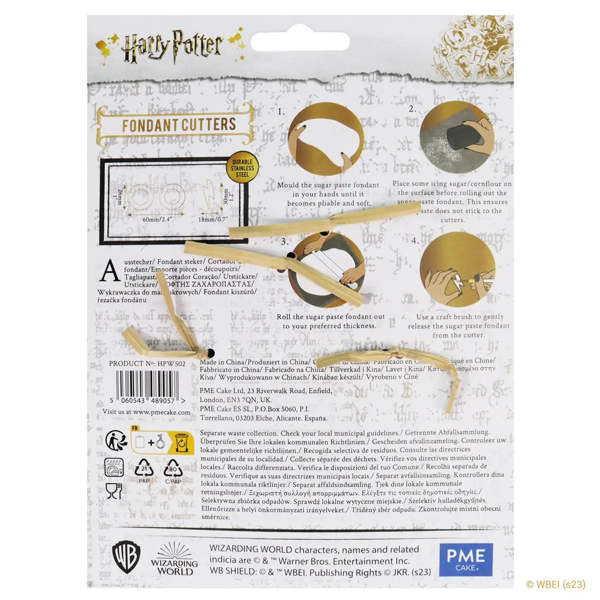 Ausstecher 1: Harry Potter Brille (62 x 27mm). Ausstecher 2: Harry Potter Blitznarbe (35 x 13mm).