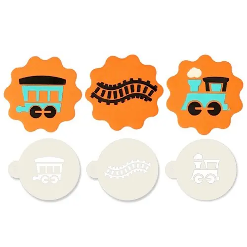 Die Schablonen von können zum Dekorieren von Cupcakes, Torten und Keksen auf viele verschiedene Weisen verwendet werden. Sie können eine Vielzahl an Techniken verwenden: Royal Icing, Airbrush, Pulverfarben, Sprays, Kakaopulver, …