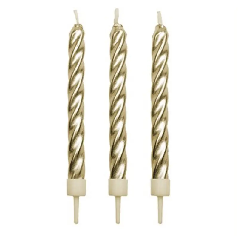 Kerzen gold mit Halter 10 Stk.