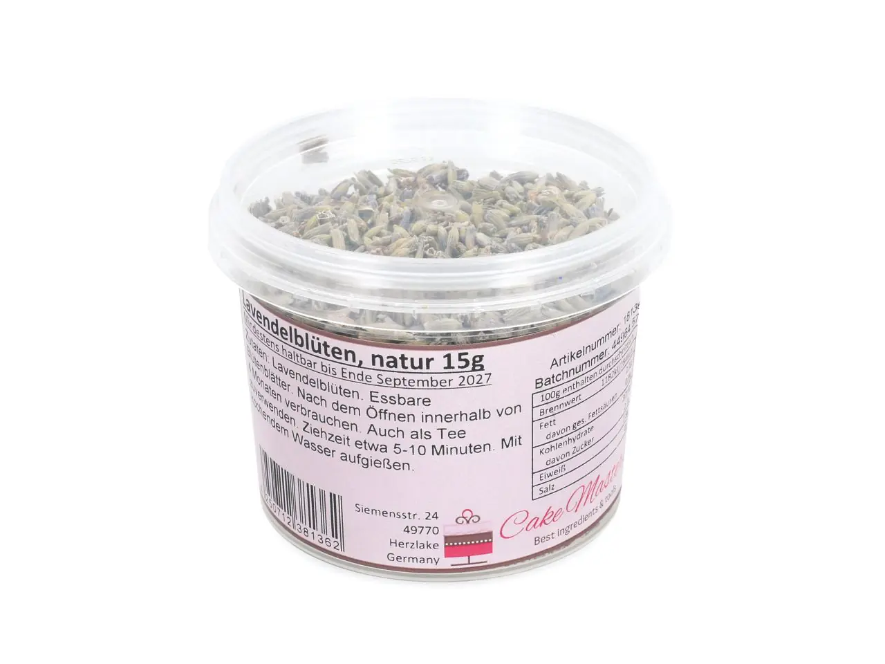 Echte, getrocknete Lavendelblüten als Dekoration für beispielsweise Torten, Eclairs oder Salate. Die Blütenblätter sind essbar oder als Teeblätter zu verwenden.