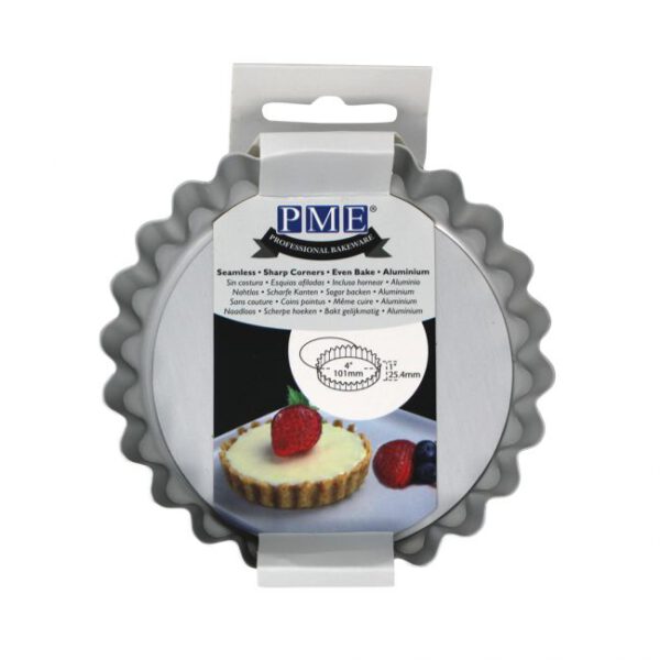 Diese Tarteform mit einem herausnehmbaren Boden von PME hat einen Durchmesser von 10cm und einer Höhe von ca. 2,54cm. Die Tortenform besteht aus extra dickem Aluminium, welches eine gute Wärmeübertragung gewährleistet. Sie besteht aus eloxiertem Aluminium und durch den herausnehmbaren Hebeboden ist sie einfach zu handhaben.