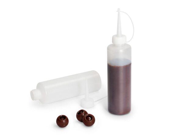 Ideal zum präzisen Dosieren von Flüssigkeiten wie Pralinenfüllungen oder Saucen sind diese praktischen Flaschen. Die Öffnung können Sie auf die gewünschte Größe aufschneiden.