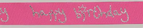 Satinband Happy Birthday magenta 1m