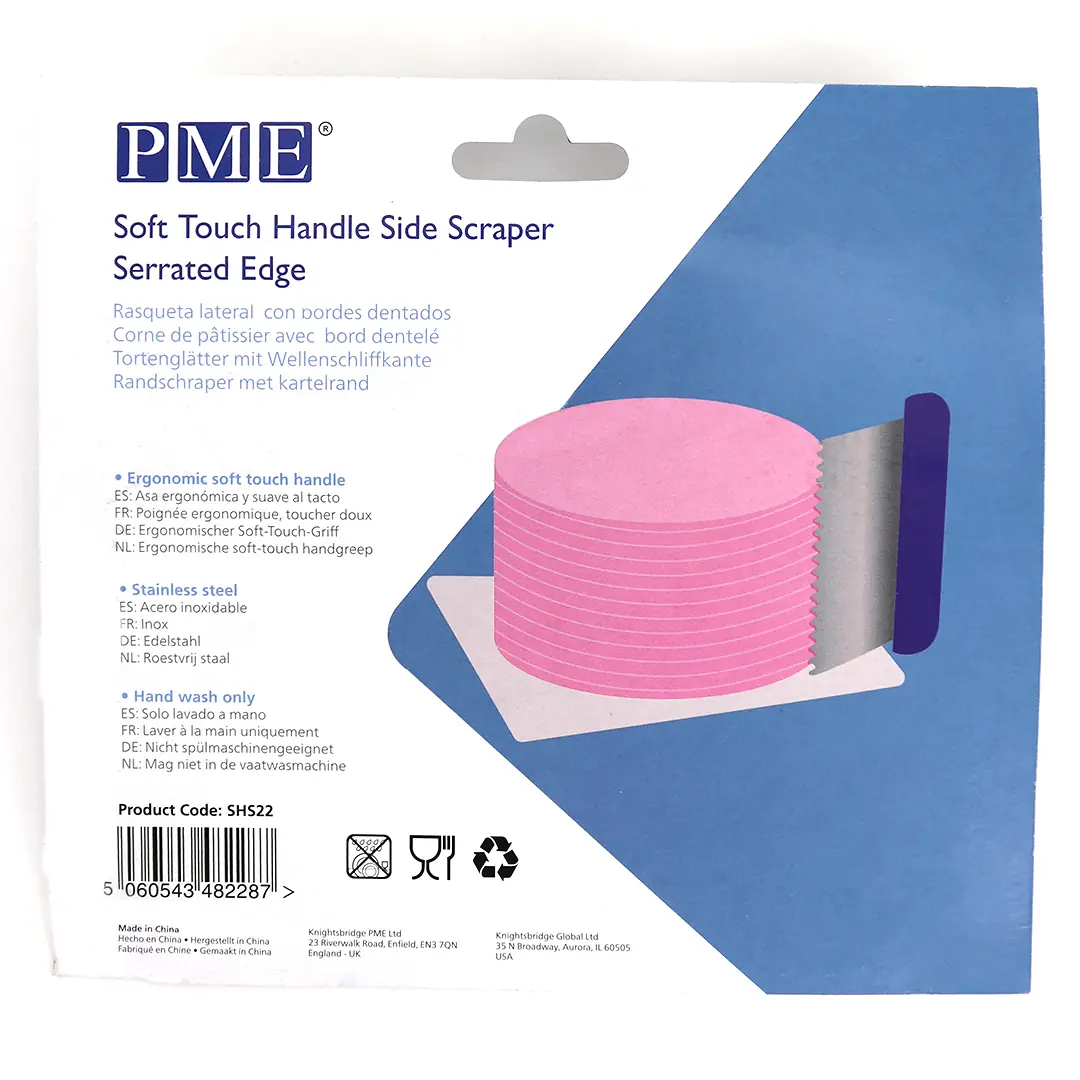 Dieser Seitenschaber ist ein geschicktes Werkzeug, das Ihrem Kuchen ein stilvolles Finish verleiht.