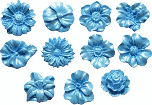 Verschiedene BlumenAbmessungen ca. 2cmEinfaches Herstellen von Figuren und Formen in gleichbleibender Qualität.Form aus lebensmittelechtem Silikon – jede Form kommt einzeln verpackt. Vor dem ersten Gebrauch sollten Sie die Form mit Seifenwasser gründlich auswaschen.Kann verwendet werden mit Zuckermasse/Rollfondant, Marzipan, Mexican Paste, Flowerpaste (Blütenpaste), Schokolademodelliermasse, gekochtem Zucker, Isomalt, Salzteig, Fimo, …Umgang mit Silikonformen:Form mit Maizena (Maisstärke) einstauben und ausklopfen.Dekormasse in alle Vertiefungen fest eindrücken, überstehendes Material mit einem glatten Messer (oder einer Palette) entfernen.Eventuell für ein paar Minuten ins Tiefkühlfach geben (dadurch verhindert man ein Verformen der Figur beim Herausnehmen). Die Figur kann anschließend mit diversen Pulverfarben bemalt werden.