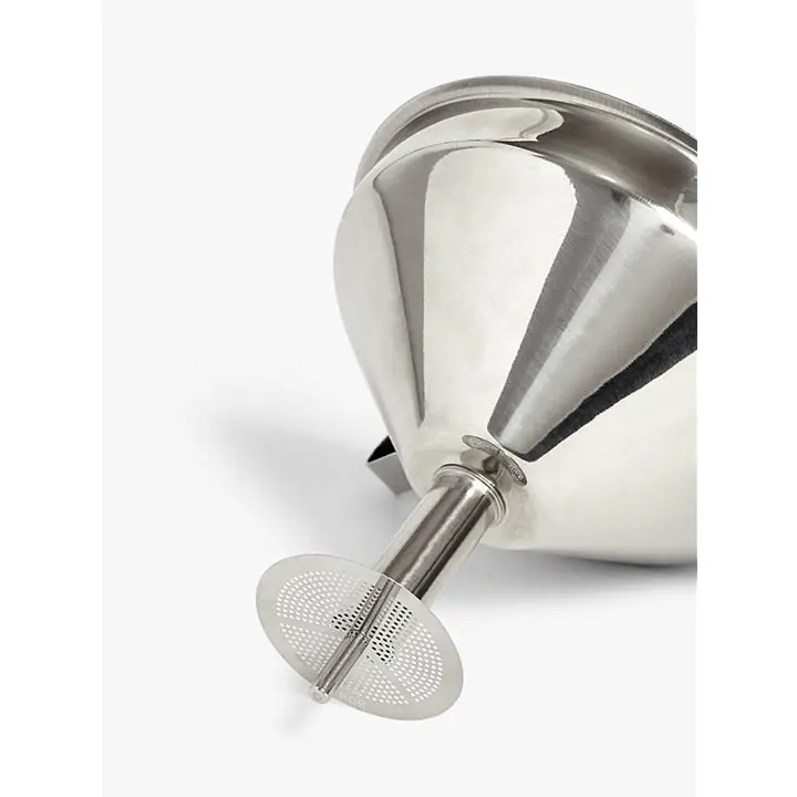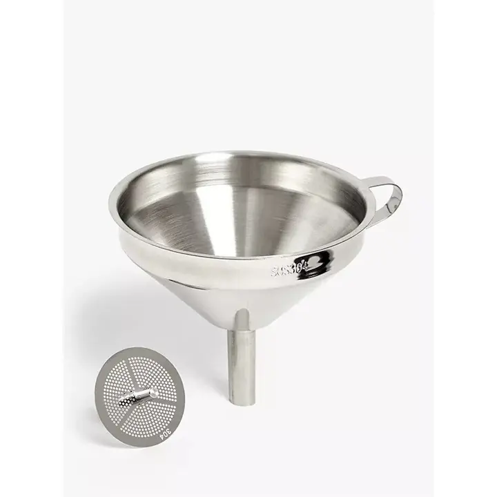 Dieser Edelstahltrichter ist das perfekte Werkzeug ohne Unordnung zum Filtern, Abseihen und schnellen und präzisen Übertragen von Zutaten.
