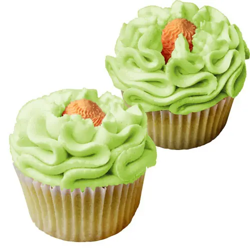Die Spritztülle am Spritzbeutel befestigen, diesen mit Buttercreme füllen und gerade über den Cupcake halten. Den Spritzbeutel drücken und nach links und rechts drehen, während der Spritzbeutel langsam nach oben bewegt wird.