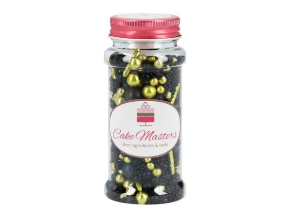 Dekorative Zuckerdekor-Mischung in den Farben Schwarz und Gold. Ideal für Themengebäcke, Desserts uvm.